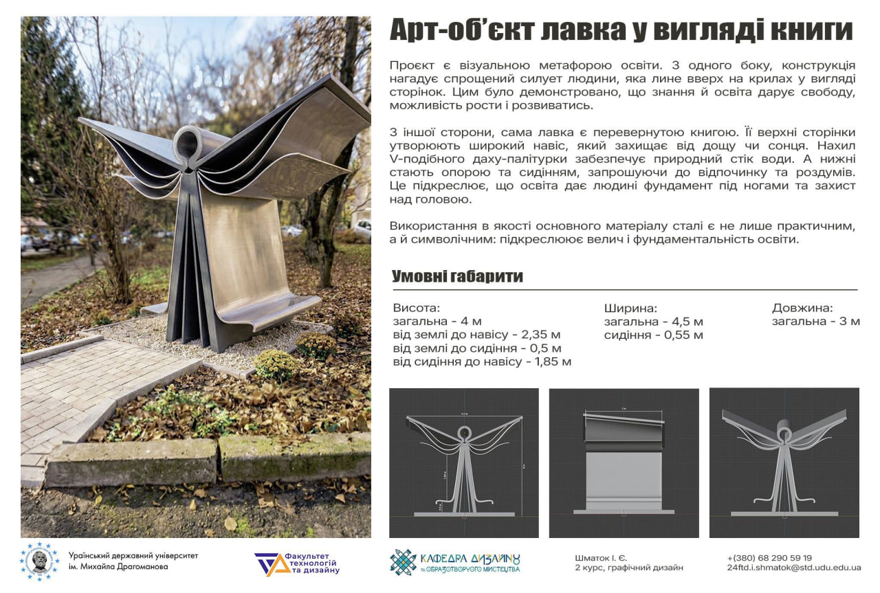 Учасники розробляють ескізні та концептуальні рішення артоб’єкта, який має символічно відображати значення книги, освіти та науки як важливих складових розвитку українського суспільства.